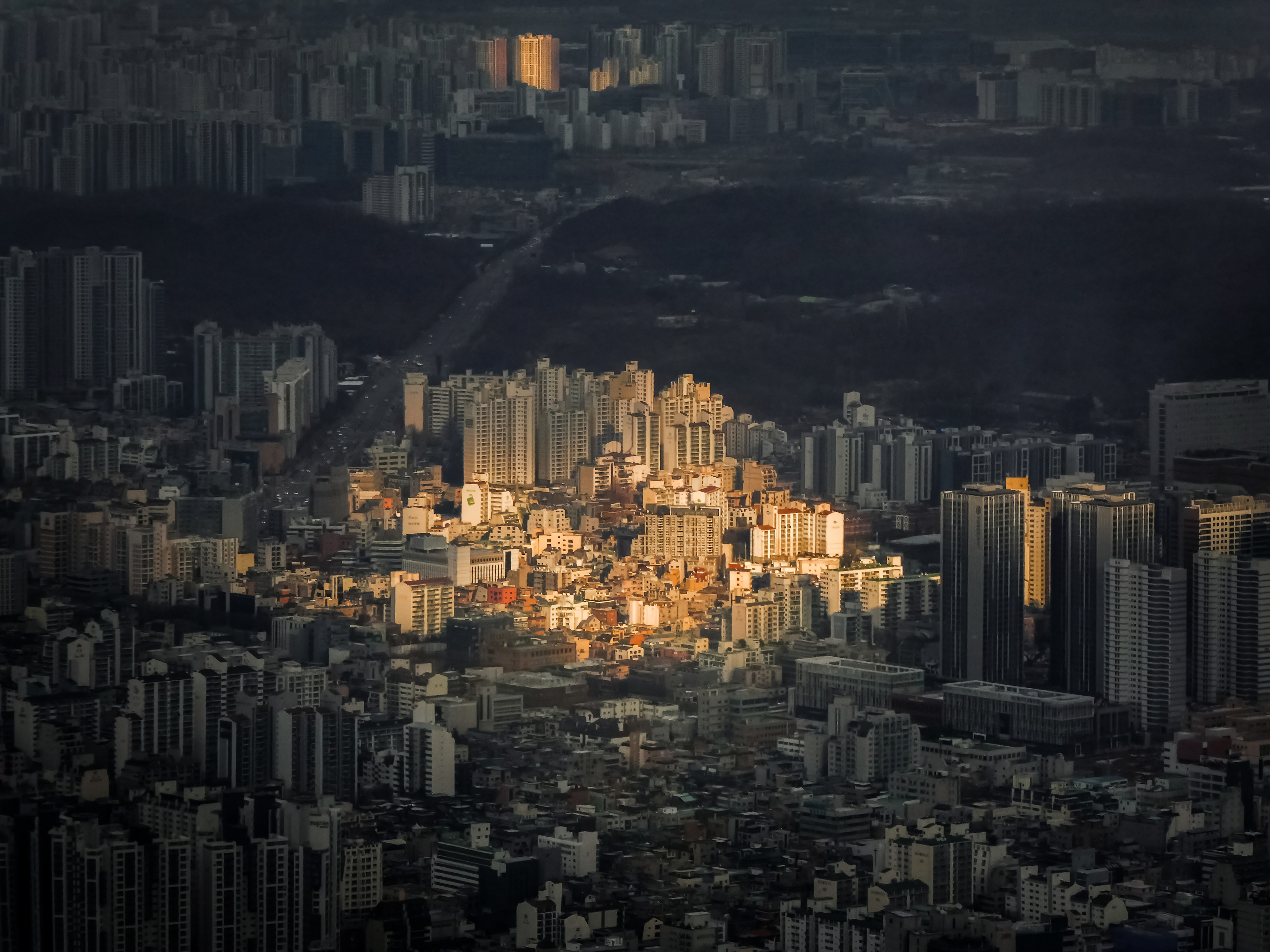 This photograph captures a dense urban sprawl, most of it cloaked in shadow. A single cluster of buildings, however, receives the full attention of the sun. The result is not only a visual contrast, but a quiet suggestion: that even in the most crowded, rigid spaces, light knows where to land. At its core, this image is a meditation on presence. Cities often speak of repetition, anonymity, and noise. In them, it is easy to feel small, even invisible. Yet here, light does not fill the entire frame. It chooses a corner, briefly, without fanfare. That brief moment becomes a gesture, a reminder that clarity, connection, or even comfort, may still find us without our needing to seek it. This is not a photograph about spectacle. It is about interruption; the soft kind. The kind that enters without warning, cutting through the sameness of a day, or the heaviness of thought. It gestures to resilience, not the loud kind, but the type that remains unspoken, steady, and often unnoticed. Whether the light is read as hope, attention, divinity, or simply a break in the pattern, it is a moment of stillness within an otherwise relentless scene. A quiet assurance that something is always reaching back.